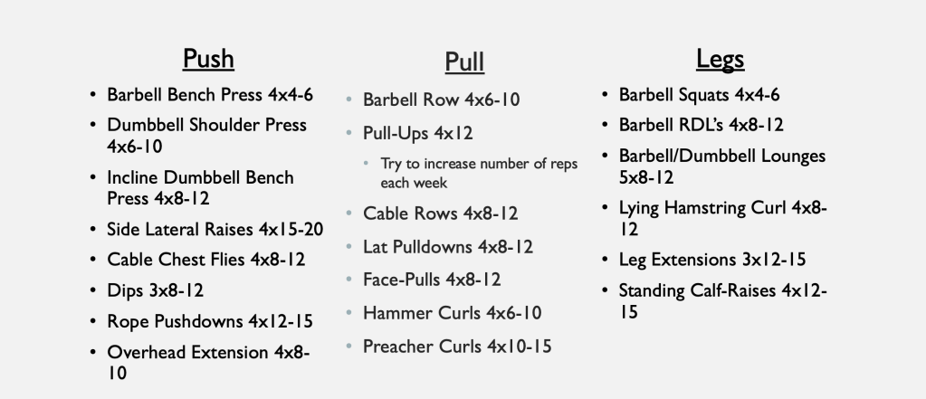 Great question! I’ve asked myself that a few times and have even tried other workout routines every now and then, but I always find myself gravitating back to a basic PPL split for a few reasons that I’ve outlined below